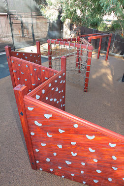 Barbara then designed a simple yet fun climbing play area composed of three freestanding and removeable climbing structures: